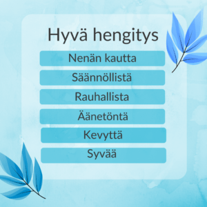 MUTTA vaikka hengityksessä ei olisikaan mitään huomattavia selkeitä häiriöitä, niin voimme silti hengittää niin, että siitä on terveyteemme haittaa. Hengityksen vaikutukset meissä ovat hyvin laajat sekä fyysisessä että henkisessä terveydessämme. Aineenvaihdunta, allergiat, happo-emästasapaino, ruuansulatus, mielen hyvinvointi jne. Hengitys vaikuttaa niin moneen asiaan.